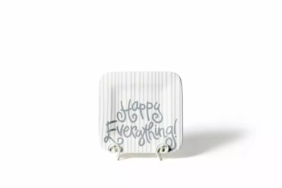 A contemporary yet neutral stripe design done the happy way. The Stone Skinny Stripe Happy Everything!™Mini Platter brings big style into the smallest of spaces. Create a happy and celebratory environment each and every day by simply attaching over 72 Mini Attachment options with the secured Velcro® strip. The square ceramic mini platter will help you find a little happy in everything.
